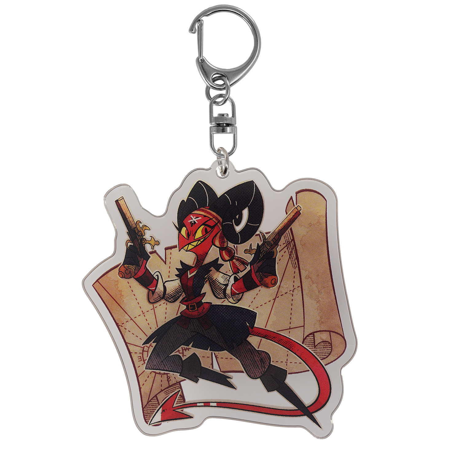 Double-sided 3 in. acrylic keychain.