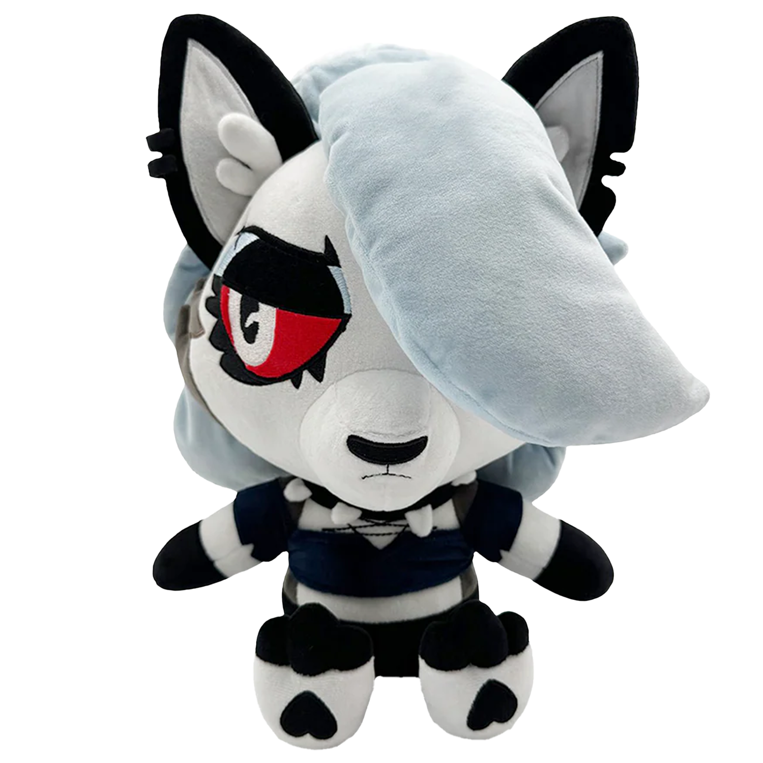 We’ve managed to tear Loona away from her phone for her return to Youtooz as an adorable plush! At 9 inches tall and sitting with her paws kicked forward to show off heart-shaped pads, a small frown sits on the muzzle of her wolfy face as bright red eyes glance to the side indifferently and a thick fringe falls over half her face. With tall pointed ears and a mane of grey hair falling down her back, she wears a small top along with black shorts and a spiked collar as her fluffy tail stretches out from behind. This plush is packed to the seams with 100% PP cotton and is made of the softest minky material, absolutely perfect for cuddling and begrudgingly doing work with!