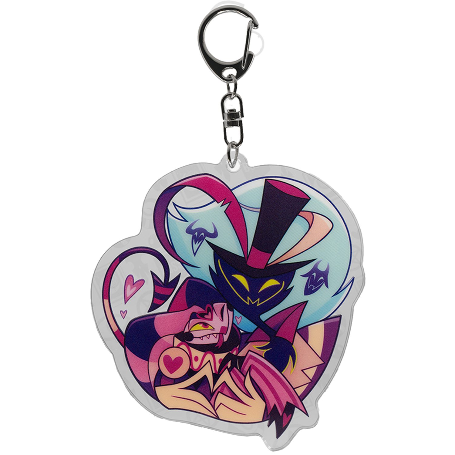 Double-sided 3 in. acrylic keychain.