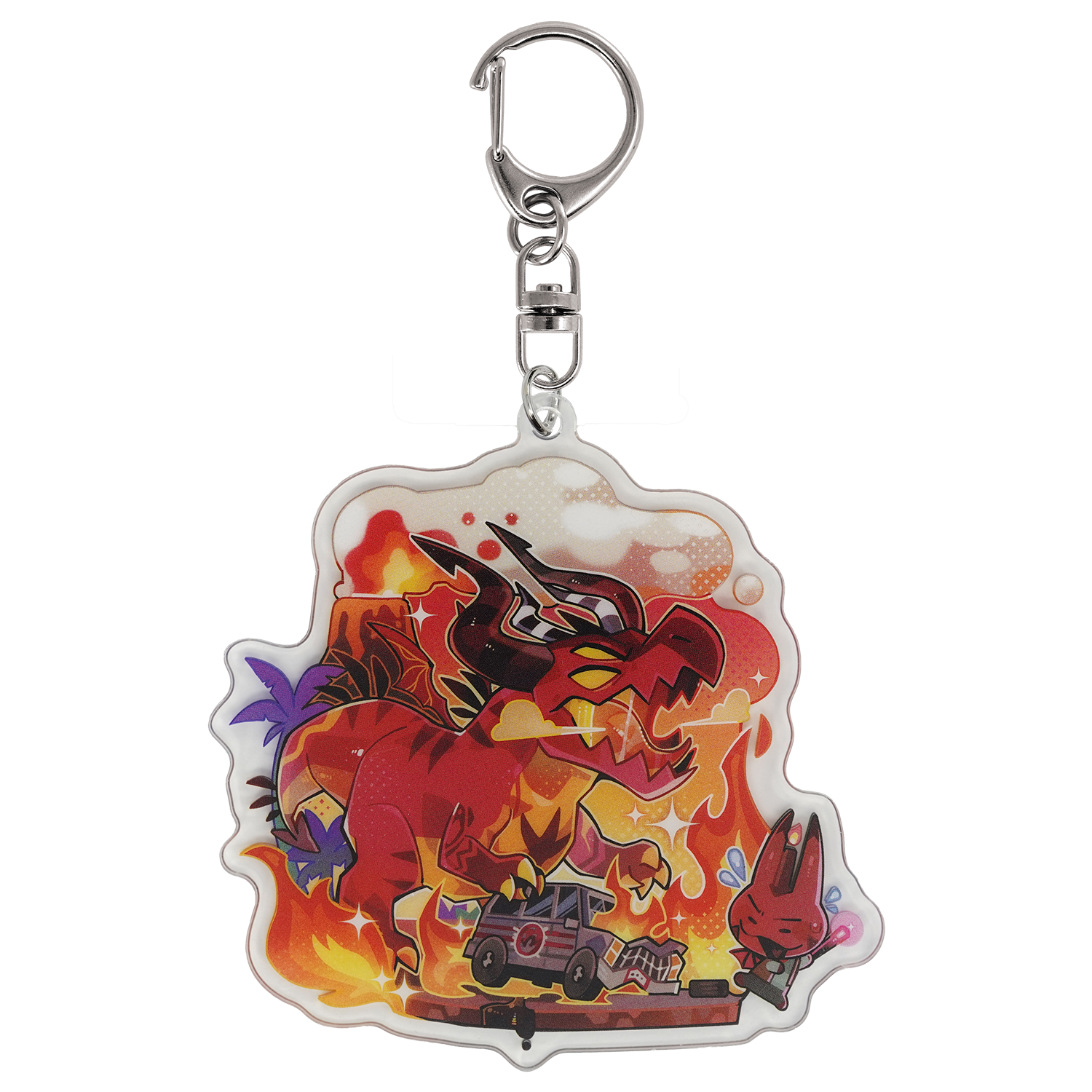 Double-sided 3 in. acrylic keychain.